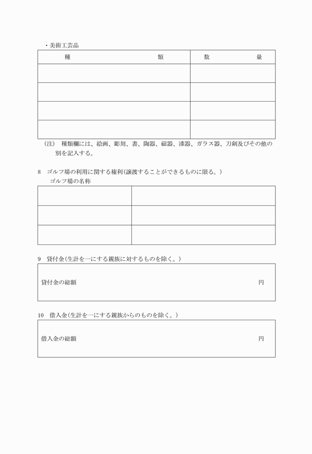 5 条例第2条第1項第7号の美術工芸品の種類は、絵画、彫刻、書、陶器、磁器、漆器、ガラス器、刀剣及びその他とする。