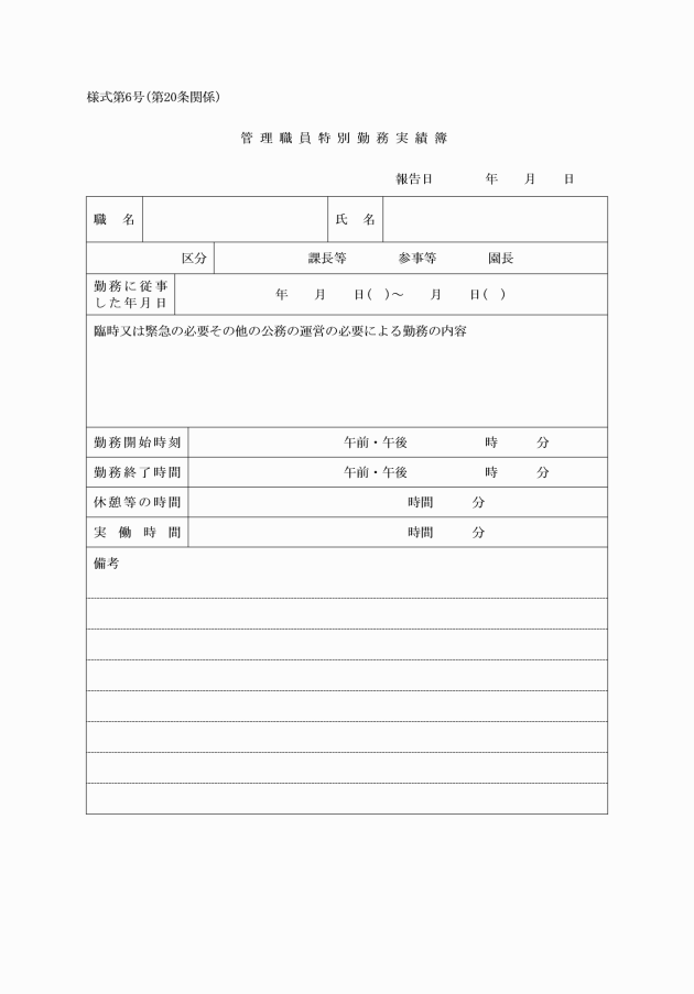 第18条 時間外勤務手当、休日勤務手当及び夜間勤務手当の支給については、勤務命令簿によって勤務を命ずるものとし、これによって職員が実際に勤務した時間を基礎として支給するものとする。